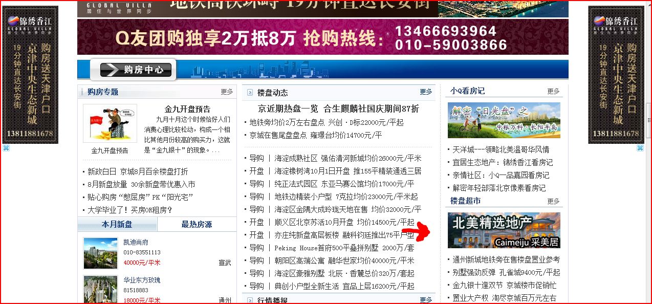 The Highlighted area above is the entry point for Caimeiju on the Fangqq.com homepage