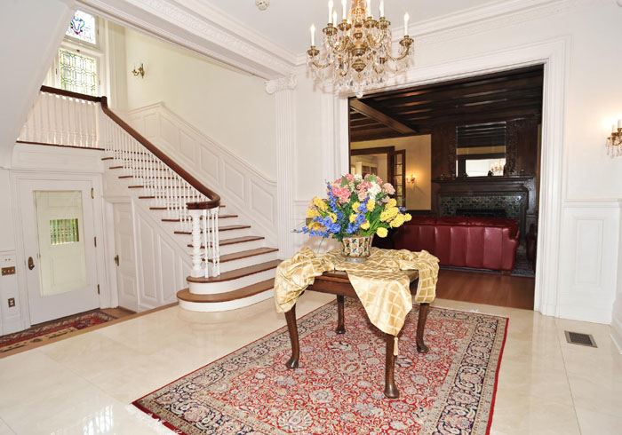 从优雅的大楼梯的第二阶楼梯往上, 楼梯平台沐浴在12平方寸彩绘玻璃窗洒进来的光线中,由此上行,您就到达二楼的中央大厅,在南侧饰有优雅的玫瑰花木扶手,俯视楼梯间的美丽景色,向南又看到令人灵感涌现、心情一振的染色玻璃窗。大型的开放式大厅通往 音乐大厅,通过 一扇高大的法式双门到达25平方英尺的阳台,俯瞰美丽的庭园,带给您与朋友和家人品酒、播放音乐、阅读或交谈的美丽户外休闲场所。 中心大厅左方的 中央大厅是主厢房,右方 (东方)是在孩子的厢房。 在孩子厢房的东南方, 通过 一扇可上锁的门 ,可至带有单独楼梯与入口的独立长辈房/客房 。