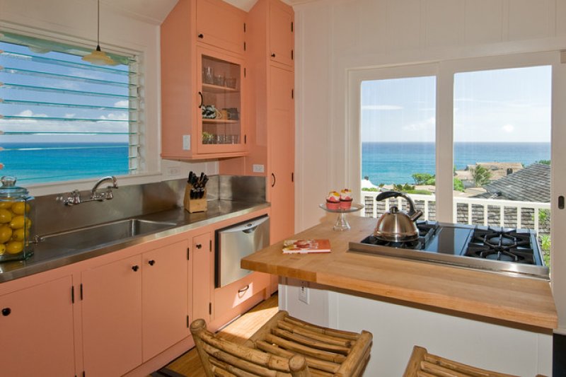 在这个厨房烹调、用餐,群鲸就在下方的海礁外激起浪花,是相当独特的经验。格外非凡。对了,还有,以及Sub Zero牌电冰箱、维京煤气炉头、费舍尔和雪派克嵌入式洗碗机费、古典式不锈钢镍台面和美丽的定制复古风橱柜。在家招待客人的绝佳陈设。