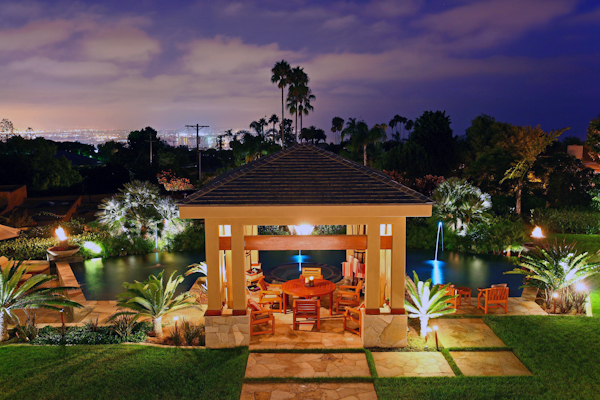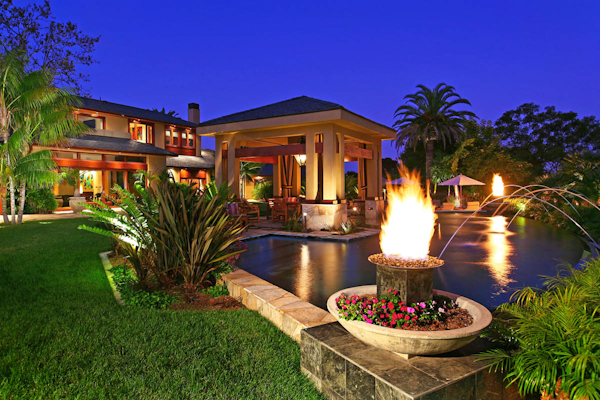 这片庭院精巧规划及设计,提供了为数惊人的个别空间,供人享受这些充满趣味的小天地。这片地产到处可见许多珍稀植物,包括一些超过100年的棕榈标本。大片草坪邻接花草树木丰美的花园,提供各种开阔的空间;配合你心情的变化,也提供隐私性高的热带花园。居高临下、完美无缺的灯光,在夜间照亮了青翠的庭院景观,效果让人留下深刻印象。 瀑布/喷泉—你不会漏掉大门进门处这座实心的花岗石瀑布/喷泉。棚架覆盖的美丽步道从一边环绕着绝美出色的雕刻作品。 火堆—一个隐秘的静思花园,坐落于这片地产自己的果园和温室区。另一个迷人的角落包括一个有着天然石头座椅的火堆,让你和朋友可以享受拉荷雅的夜景。 柚木亭—大型的柚木亭有及地的帆布幕帘,可供户外晚餐用,帆布幕帘可以打开,俯瞰游泳池作乐,或关起来享受一顿私密的罗曼蒂克晚餐。