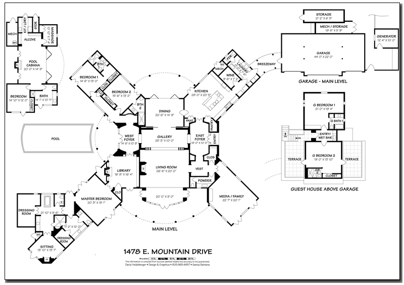 The grand six-bedroom estate contains an elegant main Drawing Room, formal Dining Room, the ultimate Media/Family Room, and an extraordinary Master Suite with en-suite Den/Library, Lounge Room with fireplace and elaborate closets and his and her baths. An ingenious Gourmet ‘Cooks’ Kitchen of approximately 500 square feet includes walk-in china cabinets, pantry, a large central island, extensive countertops, informal dining area and an adjoining 2000 bottle Wine Cellar with case storage.