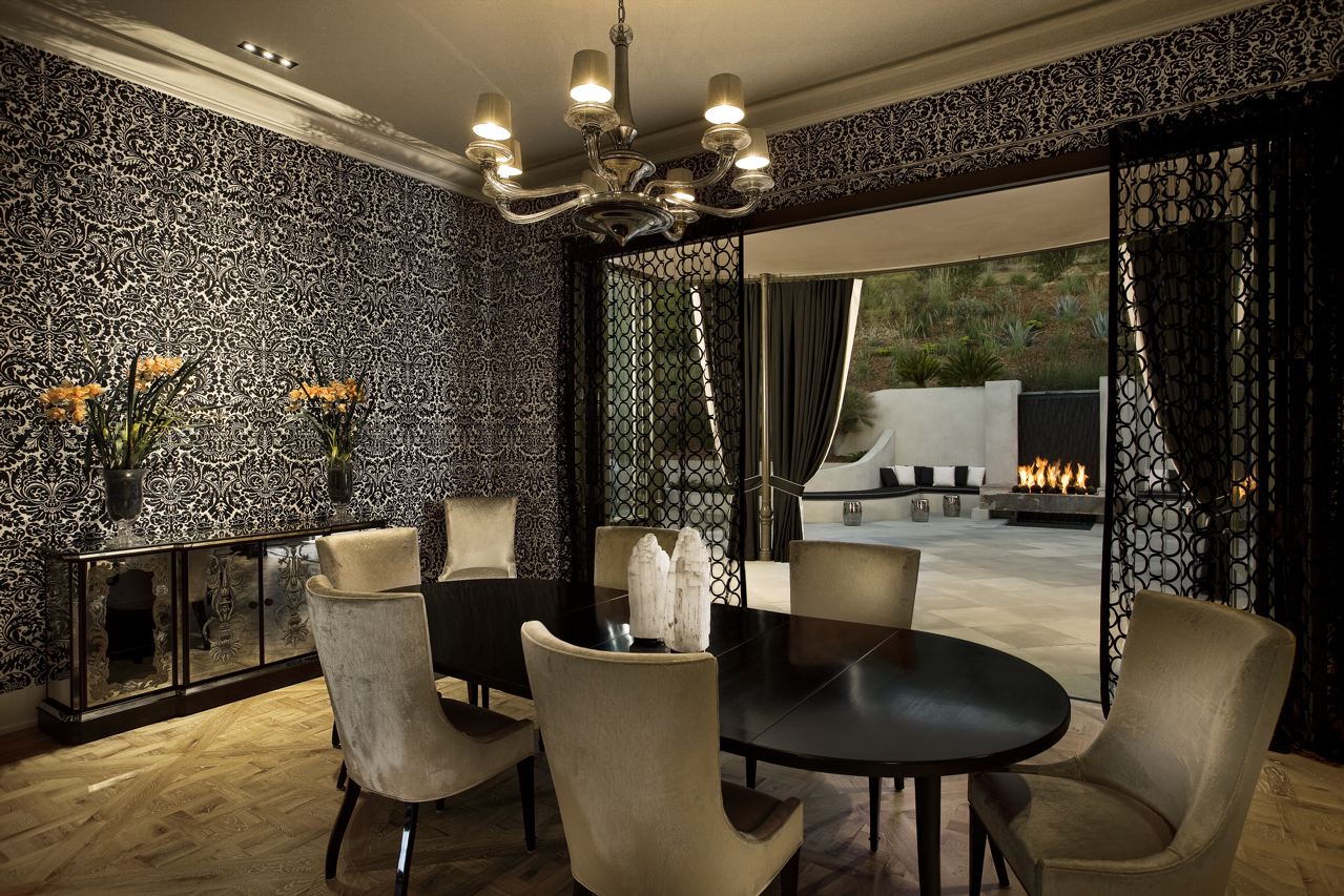 This View of the Dining Room is taken from the Entertaining Court. The View from the Entertaining Court looks across the Dining Room across the Gallery and through the Living all the way to the Pacific Ocean and Channel Islands.